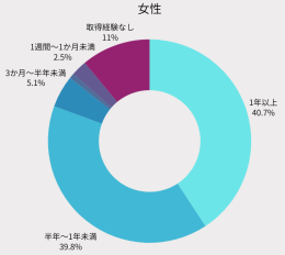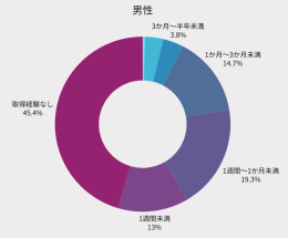 多くの女性は半年以上取得しているのに対して、男性の45%は取得していないという回答になっています。