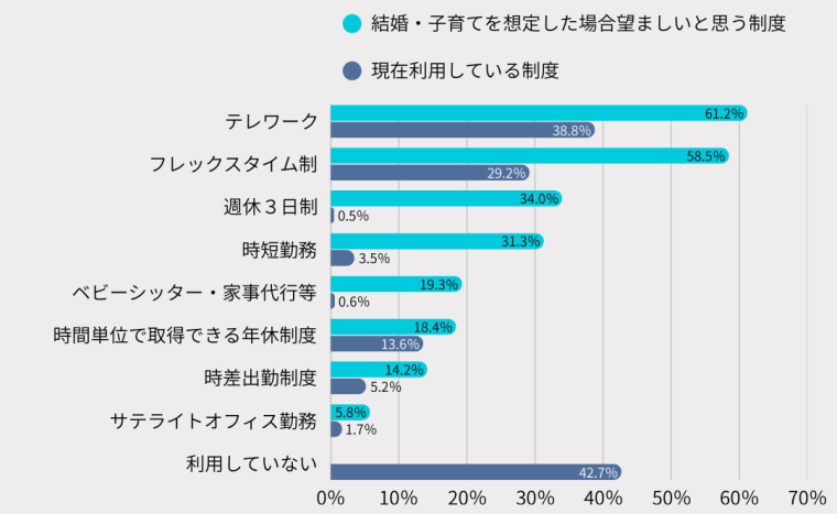 結婚・子育てを想定した場合に望ましいと思う制度について伺っています。